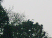 O canto típico do pisco-de-peito-ruivo (Erithacus rubecula) só agora se fez ouvir! Foi preciso a águia-d'asa-redonda, mais próxima, ter levantado voo, para esta pequena ave, escondida no arvoredo, se deixar localizar. Também uma rola-turca (Streptopelia decaoto), das muitas que hoje em dia se avistam praticamente em qualquer lugar, pousa no cabo de onda a águia antes levantou voo.